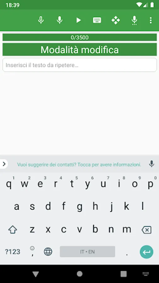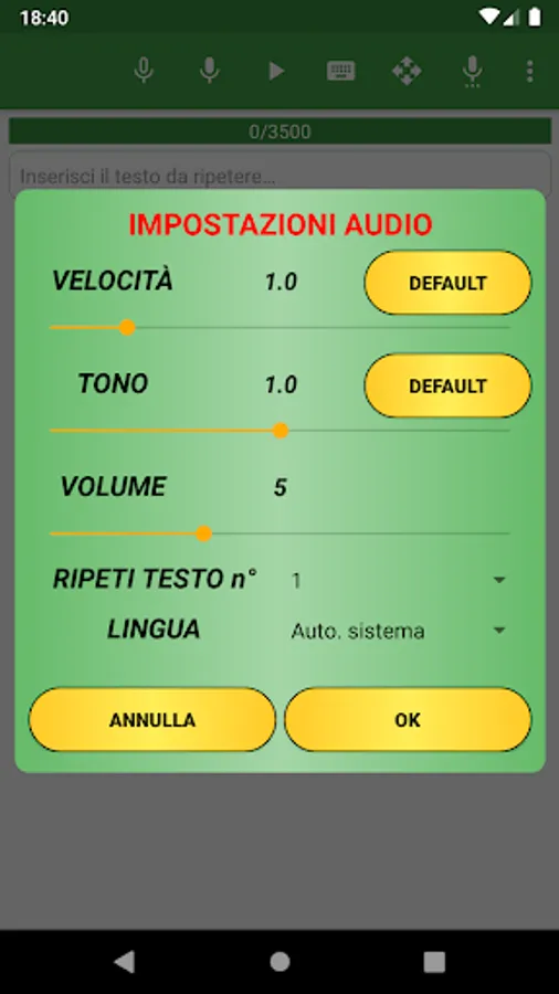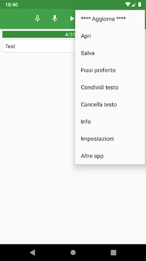 Reproduce everything that comes to mind !!! Read text is an application that allows you to convert text into voice playback! With "Read free text" allows you to convert the text into speech synthesis for a maximum of 3500 characters (Download the premium version to have no limits! Https://play.google.com/store/apps/details?id=rosario90 .leggitestopremium).