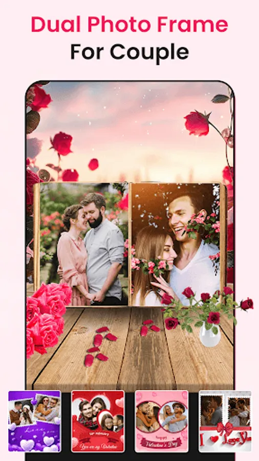 Love photo frames is the best love photo editor with a lot of beautiful love frames for your photos. Love photo frames is a powerful love collage maker for you to create amazing love collage using your photos, text with cool fonts and love frames. love photo frames editor has a very simple user interface, which everybody can use. With a powerful love photo editor, love Photo frames give you everything you need to create amazing love collage of your photos. love photo collage lets you create one-of-a-kind layouts by remixing your own photos and share them with your friends.