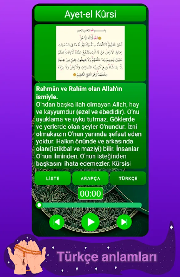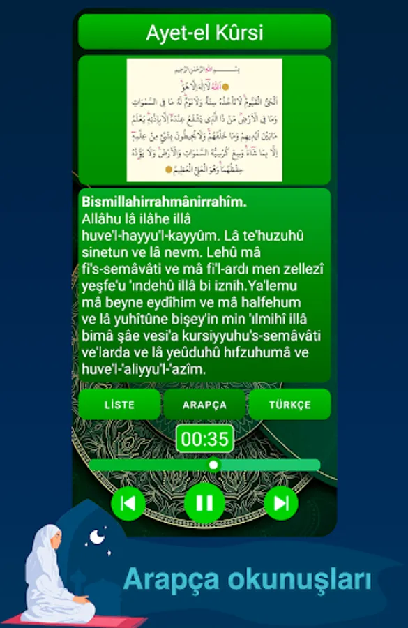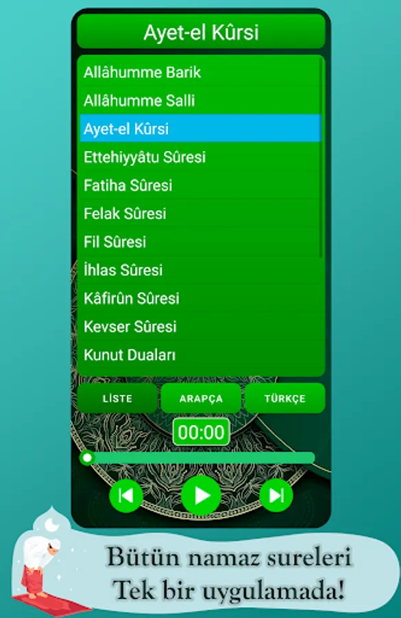 You can learn the correct pronunciation by listening to the prayer times aloud, you can read the Turkish meanings of the prayers and suras with the Turkish pronunciation of the prayer times. Stylish design, fast interface and you can use it without internet.