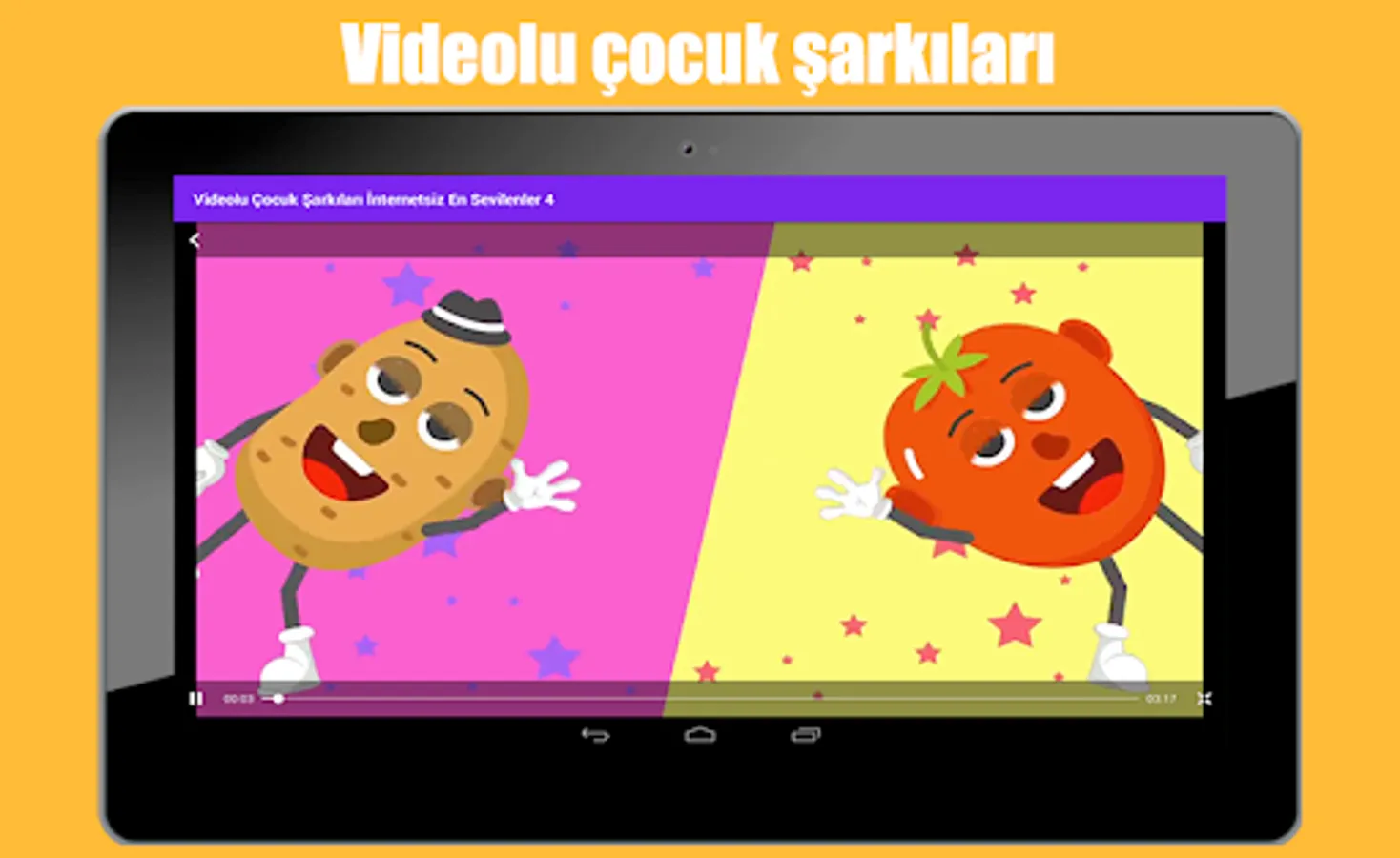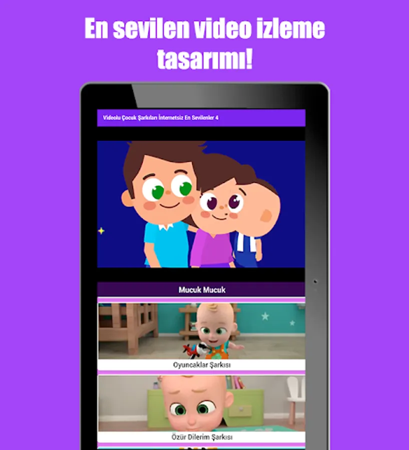 4th Series of Children's Songs with Video. You can continue this adventure with other series. The most beautiful baby songs together in Turkish with video and without internet! With the video watching method you are used to, you can listen to baby songs with video without the internet. Are you also looking for educational things for babies? With this application, you can watch educational videos for babies! Download it now and watch children's songs in Turkish without internet with video. Tablet baby video children's songs for children are at your service without internet! Download now and get started.