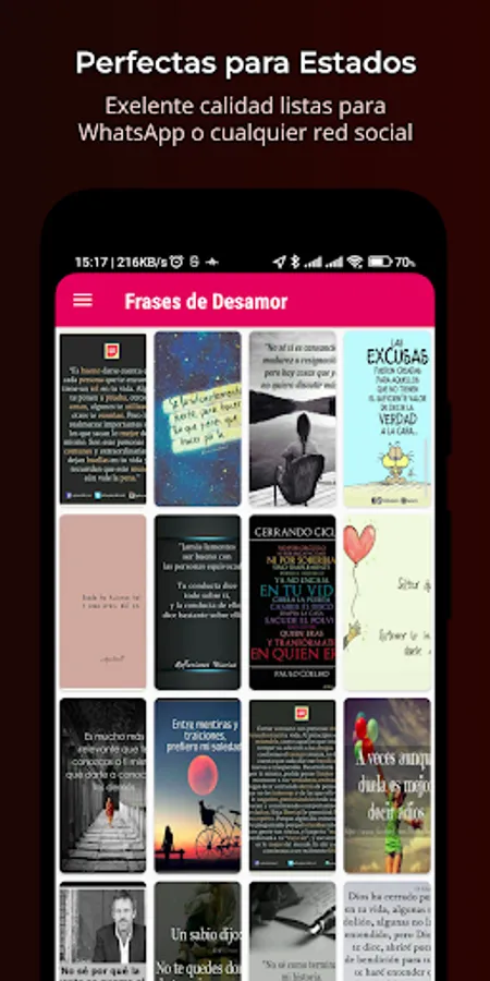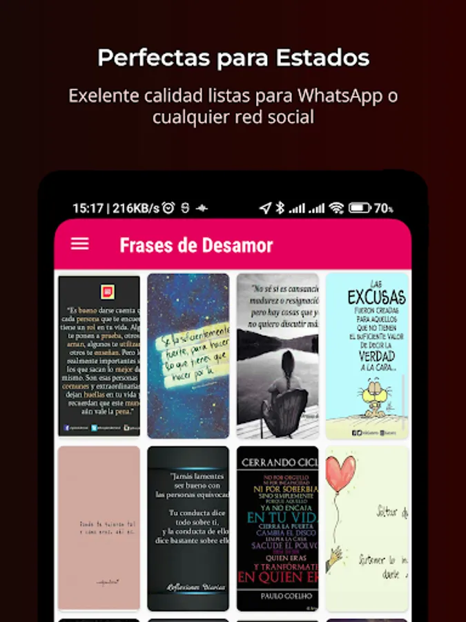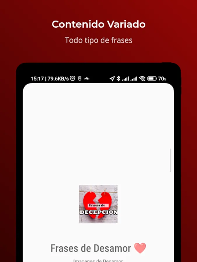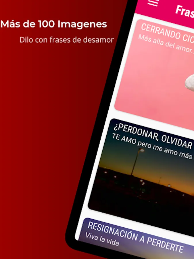 Phrases of heartbreak is an application with which you can see images of heartbreak for free, share images with beautiful phrases to your friends or partner.