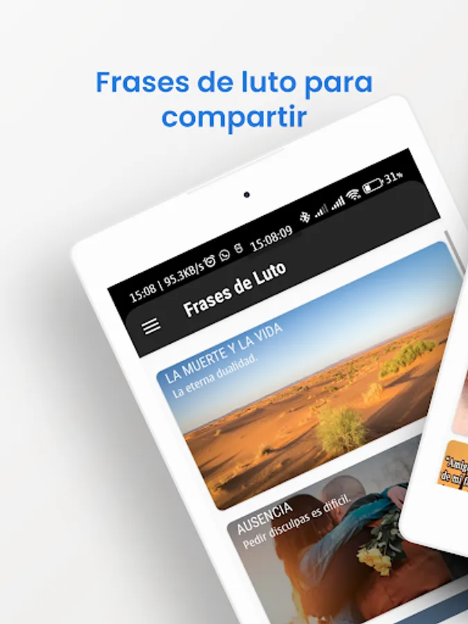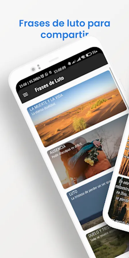 The application has been developed for the public that is generally experiencing delicate moments due to the mourning of acquaintances or relatives, we focus our efforts on obtaining the best content that correctly represents your emotional state, for this we divide the content into categories such as the following:
