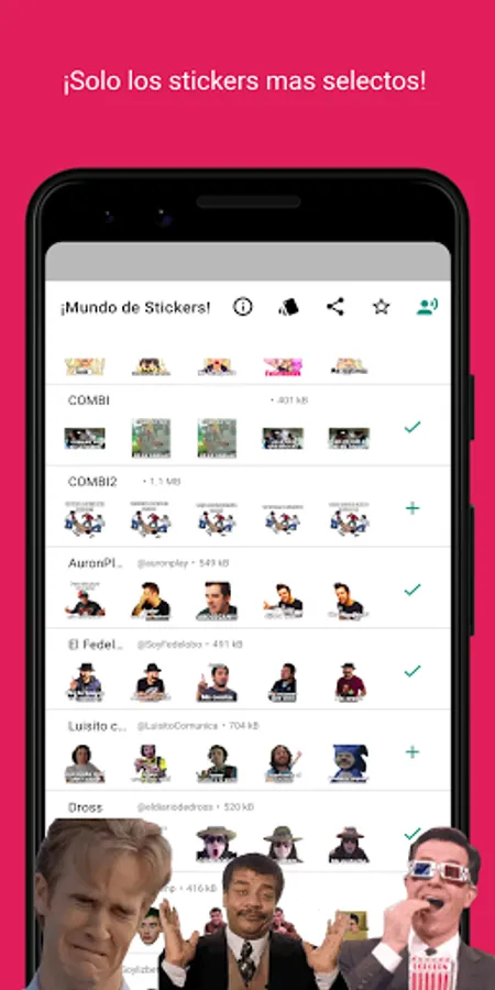 In the world of Stickers you will find a wide variety of Stickers for all tastes and with great quality, download stickers from: Actors, youtubers, celebrities, celebrities, footballers, television series and much more.