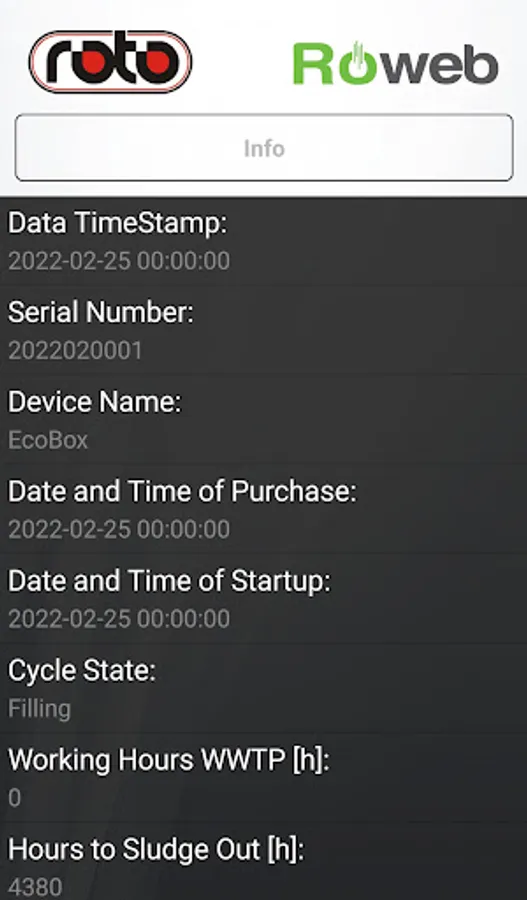 Remote control and management of Waste Water Treatment Plant Model. User can scan the QR code on the device to get started or enter the serial number manually. For DEMO you can use 2022020001.