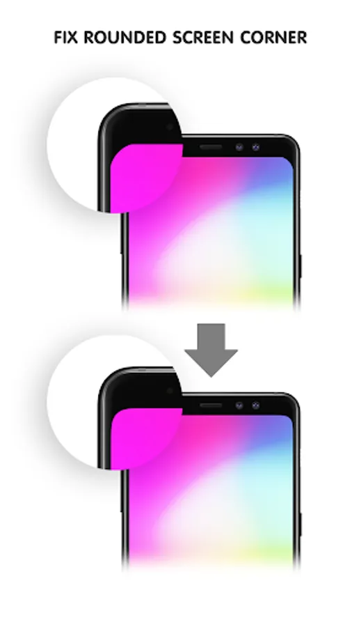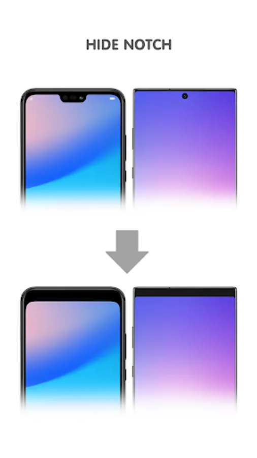 If your phone have a "notch", waterdrop selfie camera or punch hole selfie camera on the display, this app colors the status bar black, making it better fit with the notch (thereby "hiding" it). Even if you don't have a notch, but still want a black status bar, or round screen corners, you can use the app too.