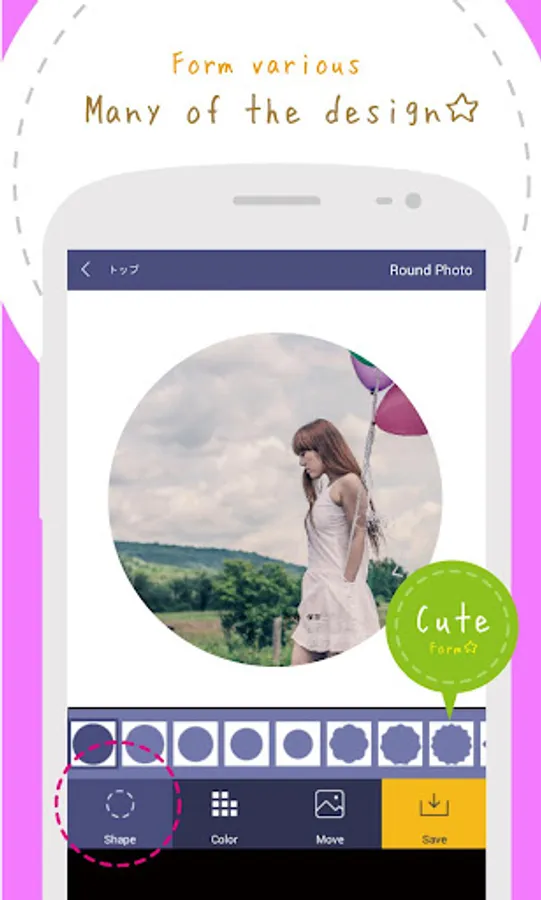 Crop out shapes on your pictures with forms like circle,heart,rhombus,triangle,cross,etc.