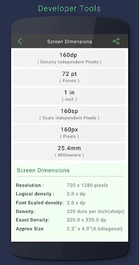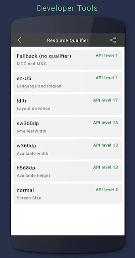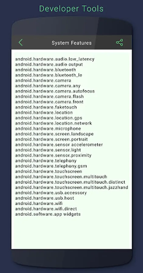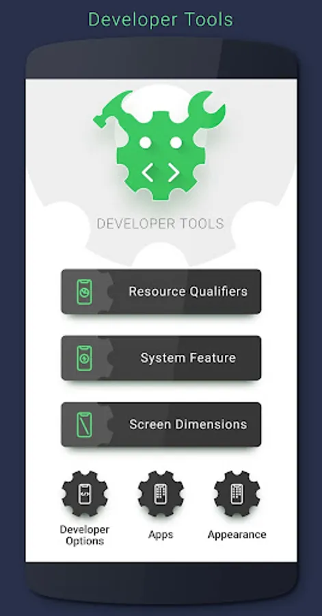 Developer tools is an application for android development assistant, this application is specially designed to improve your developing productivity. this app with you can view of resource qualifiers, View system features, allow to see screen dimensions, view recently used or installed apps, or also appearances like style tools and gradient tools