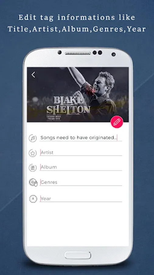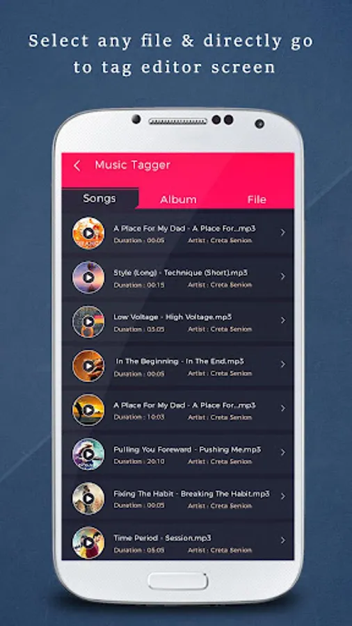 An tag editor for device music library to maintain your tracks correctly called MP3 - Audio Tag Editor app. It functions to grab music & tag album art.