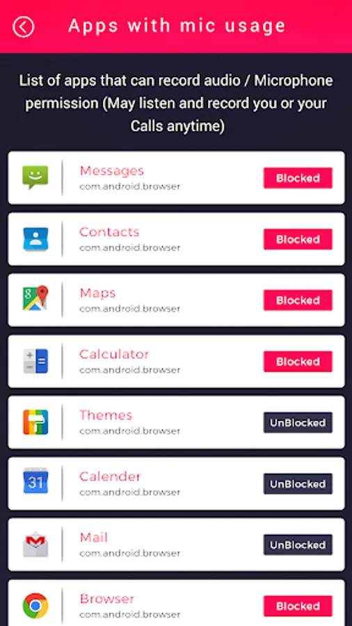 Microphone Block - Mic Secure guard is a free app that keeps your device’s audio port private. The design simplicity allows effortless usage of the app, even for the non-tech-savvy users. Microphone Block - Mic Secure guard will protect your privacy by blocking phone microphone access against spyware and malicious apps.