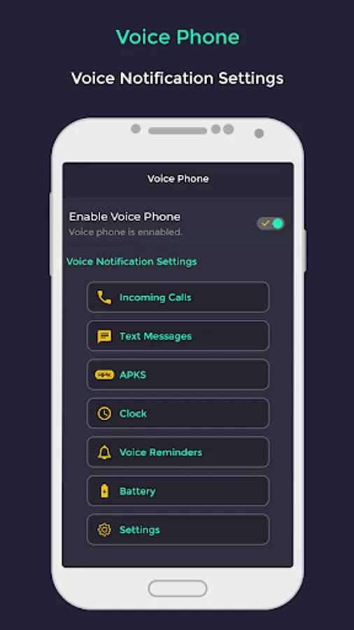 Install Voice Phone Tools and receive everything without touching it. Give your phone talk. Voice Phone Tools makes your phone talk. Provides voice alerts/notifications for phone calls, text messages, clock, battery, apps and reminders.