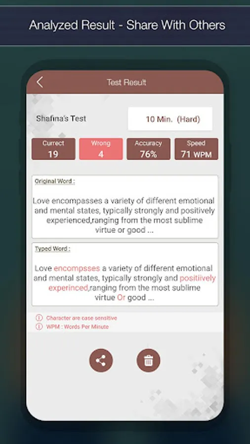 Typing Speed Test application helps to people who would like to test or measure the typing speed. It helps you find how fast you can type. The app lets you test your typing speed on mobile.