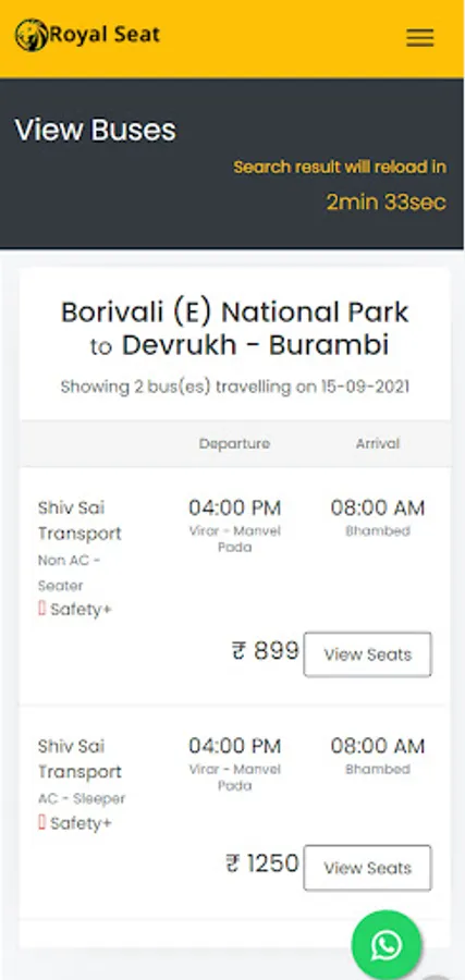 Royal Seat is Online Bus Ticket Booking App to book your seat in AC Seater, Non AC Seater, AC Sleeper, Non AC Sleeper and other luxury private buses in Maharashtra connecting popular routes of Maharashtra (As of now Kokan to Mumbai region) with the lowest bus ticket fares and best bus booking offers. Download the Royal Seat App now to book private luxury bus ticket online.