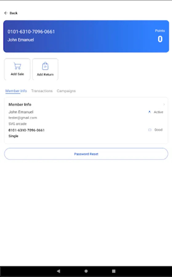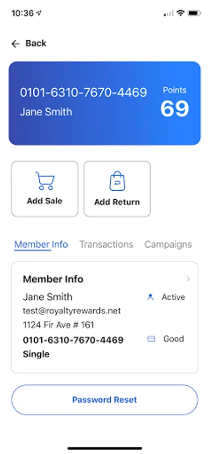 This application allows merchants to process real-time loyalty transactions, view and redeem marketing campaigns, add new member information, and update existing member information. It is not for any other purpose.