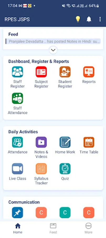 R.P.E.S. Jnana Saraswati Public School mobile app is a simple and intuitive application focused on enhancing the communication between Principal, teachers, staff and parents. The school management, teachers, parents and students gets on a single platform to bring transparency in the entire system related to a child’s activity. The aim of this app is to communicate and share all information real time with all stakeholders of the school