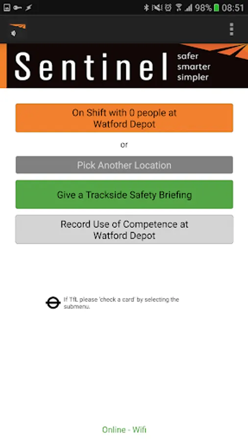5. Follow the on screen options (more detailed instructions on using the app are available at www.railsentinel.co.uk)