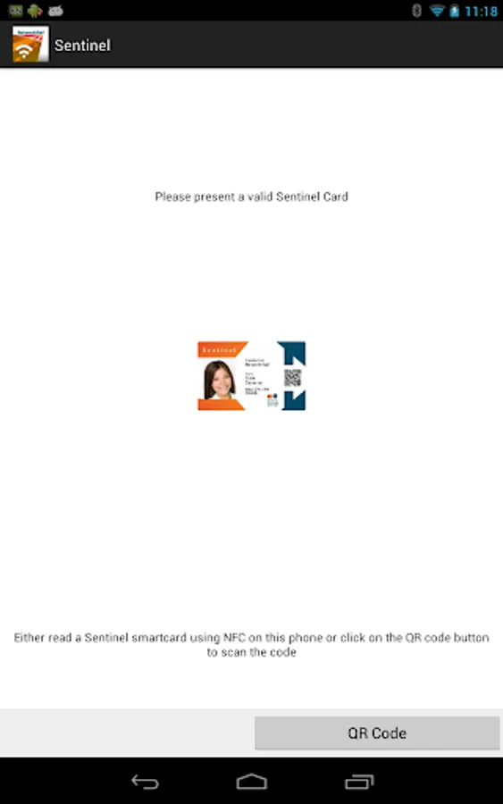 2. If using NFC, hold the new Sentinel smartcard to the back of your device OR click the QR code button and focus the camera on the card’s QR code.