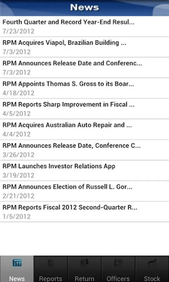 The RPM International Inc. Investor Relations App provides investors and analysts with up-to-date news and information from RPM.