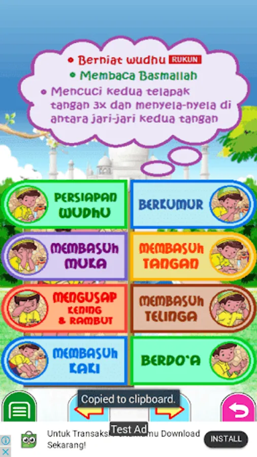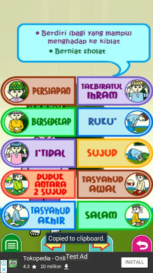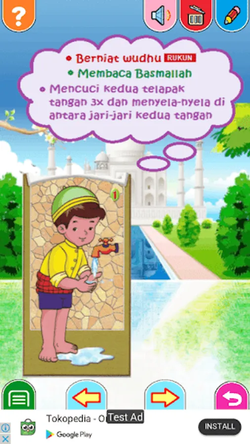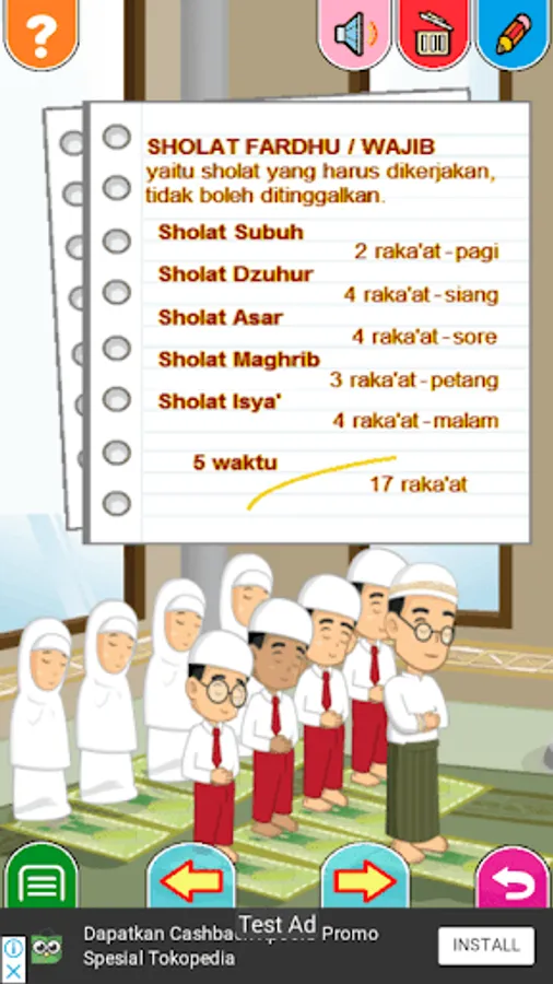 Muslim Children's Prayers is an educational application on Android smartphones made by the nation's children which is very useful to help children learn about Islam from an early age. This application contains an initial guide to the daily prayers of Muslim children, an initial guide on ablution and prayer, as well as memorizing short letters of the Al-Qur'an.