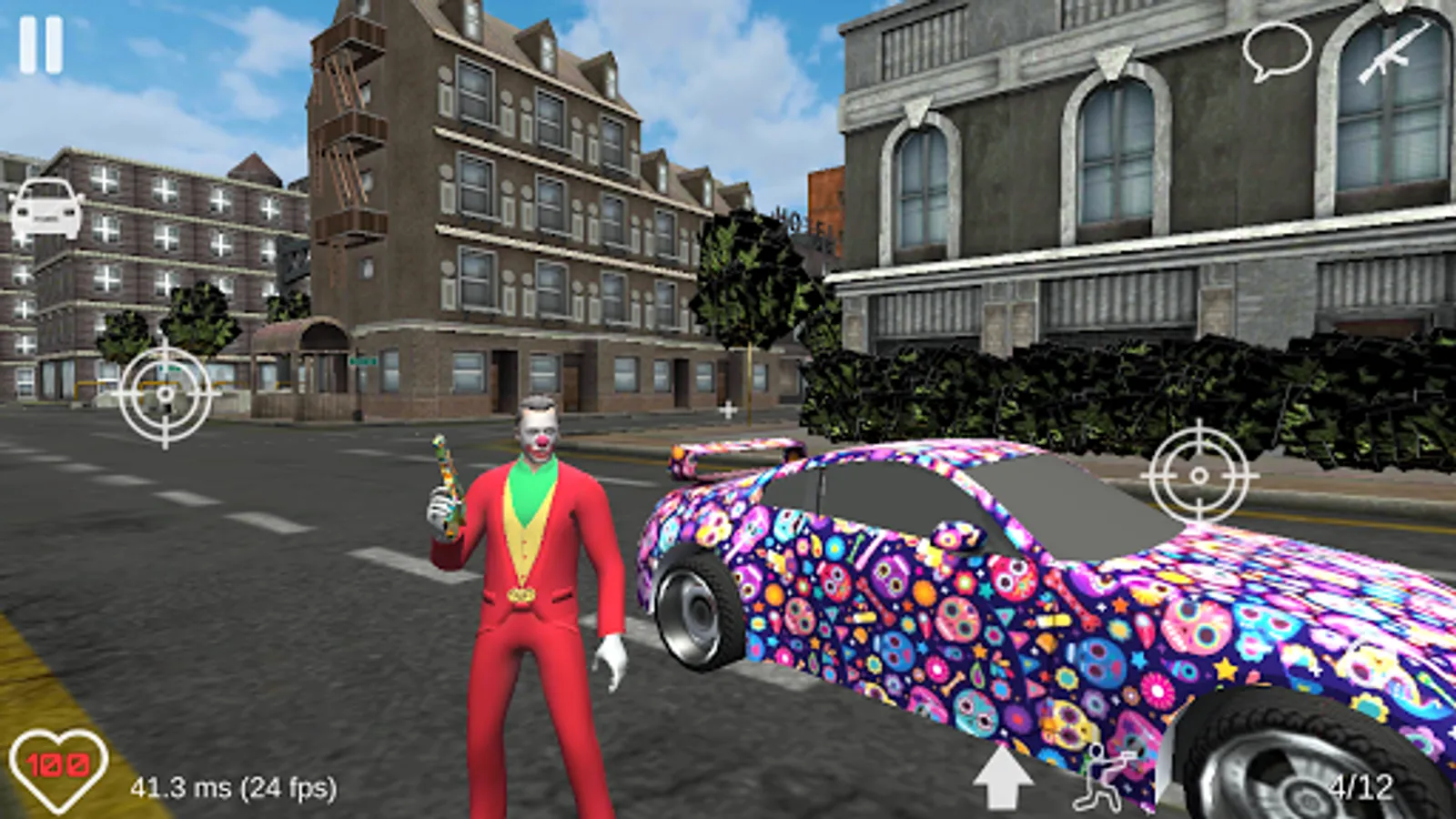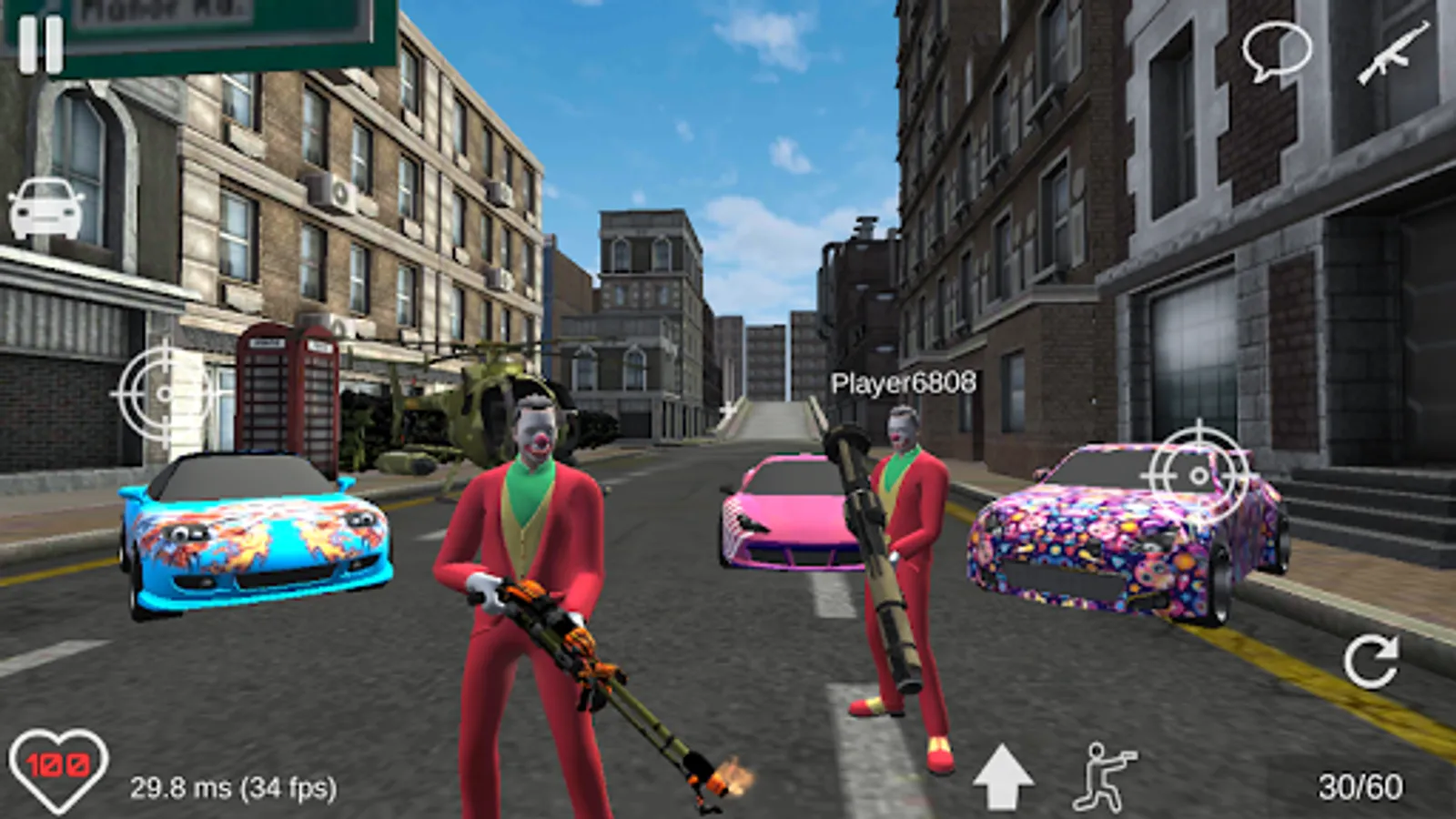 Your character is a crazy killer clown. You are provided with a variety of weapons: pistol, shotgun, AKM, M4, Bazooka, sniper rifle, flamethrower, machine gun and grenade launcher - a good choice to knock out the enemy :) There are also vehicles: cars, helicopters and planes to quickly move around the map.