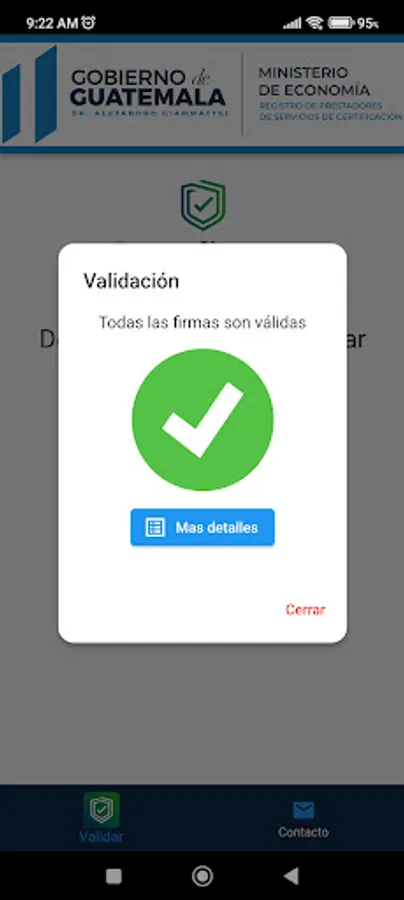 Application to validate Advanced Electronic Signatures issued by Authorized Certification Service Providers in Guatemala.