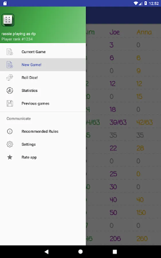 Playing Yatzy with friends or family is fun! But in some situations you might be missing either score board papers, a pen to write with or even one or more dices! Don't worry this app is made to solve exactly those situations. A very easy game setup menu lets you enter as many players as you want, with a tap of a button your score card is generated to keep track of every player's score. The score sheet automatically calculates for upper score, bonus and total score. In case you are missing dice the app ships with a very unique dice rolling game specialized for Yatzy! The dices are rolled using simulated physics to make the experience as close to a real game of Yatzy as possible! It's so close to reality that you might even see rolls where a die is leaning or on top of another. Each player have three rolls each turn and are able to lock and unlock any dice of choice.