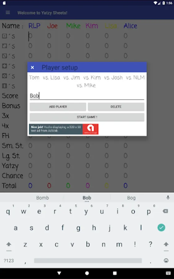 NOT A YAHTZEE GAME - THIS IS A SCORE KEEPER APP