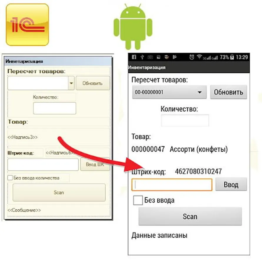 Universal software for mobile devices for accounting in warehouses, trading floors, stores using bar coding. The solution turns a mobile phone into a complete data collection terminal. The software product allows you to adapt all kinds of business processes to any configuration 1C version 8.2 and higher. The main difference from other systems is that the entire development of the client’s logic on a mobile device is carried out on the 1C side and does not require separate knowledge from the 1C programmer. The program allows you to quickly configure operations on a mobile device in conjunction with 1C. The design of forms and programming of event handlers is carried out in external processing, which in turn does not require changes in the 1C configuration.