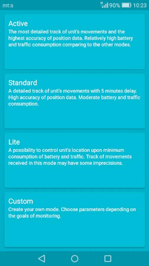 The application supports the selection of modes from an existing set or create a new one to suit specific needs. A large number of options allows you to receive accurate information, while consumer traffic and reduce battery consumption.