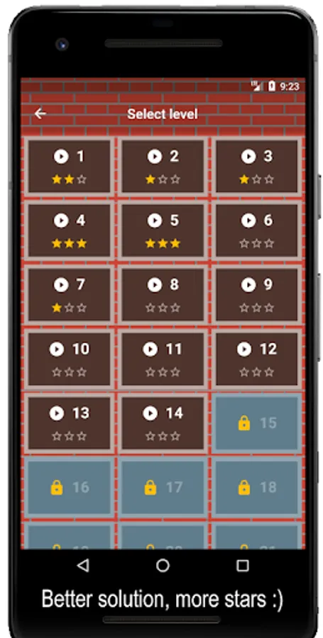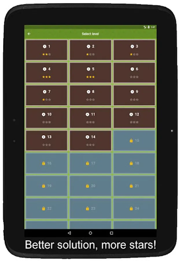 As you progress, new levels are unlocked. Levels can be unlocked as a reward as well. Less steps you make, more stars you win - so try to find the optimal solution! Minimum number of steps required vary from level to level.