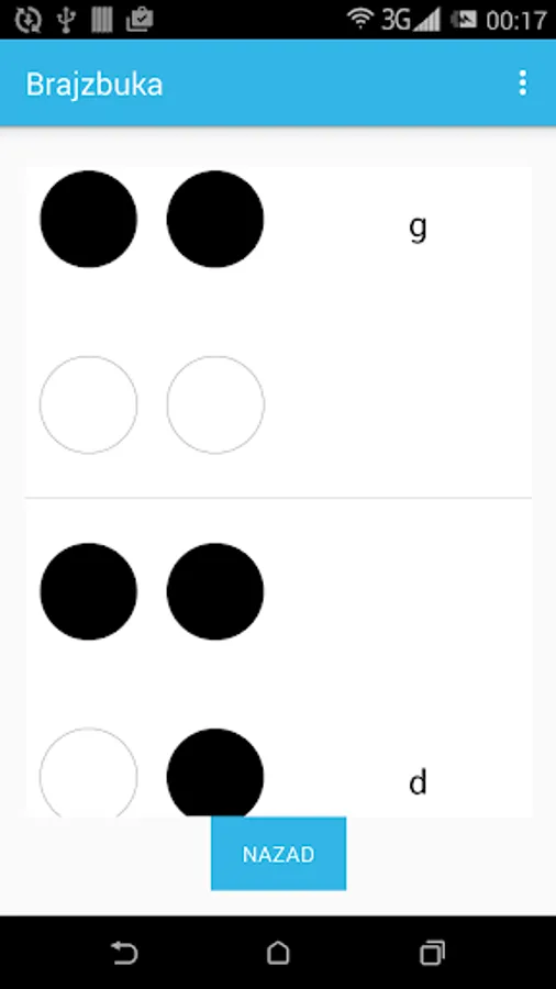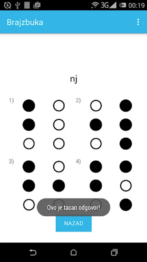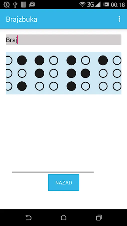 This application was created and is supported by the Ministry of Labor, Employment, Veteran and Social Affairs, in order to inform, understanding and learning Braille through the use of a base expression of translation typed text in braille expressions of knowledge and opinions with the help of a quiz.