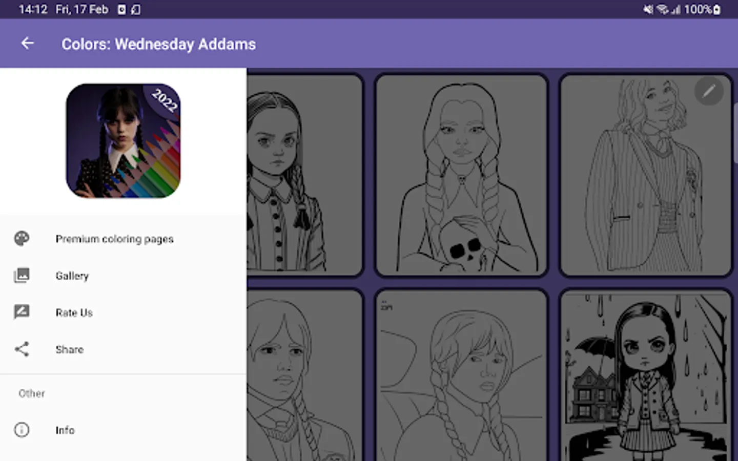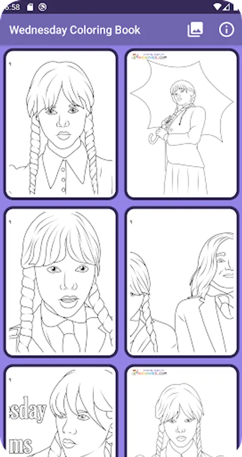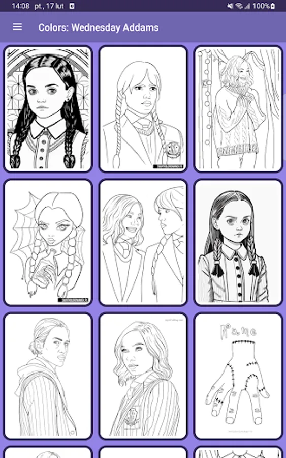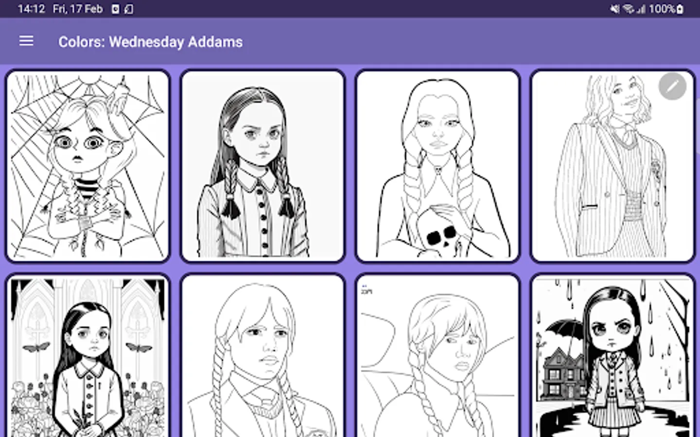 Colors: Wednesday Series app is fun and compelling way to de-stress and get creative! Application has high quality pictures and images for you to color, paint, and draw on. You can draw some difficult picture or for kids we have some easy coloring page to start drawing. Discover the joy of art and color!