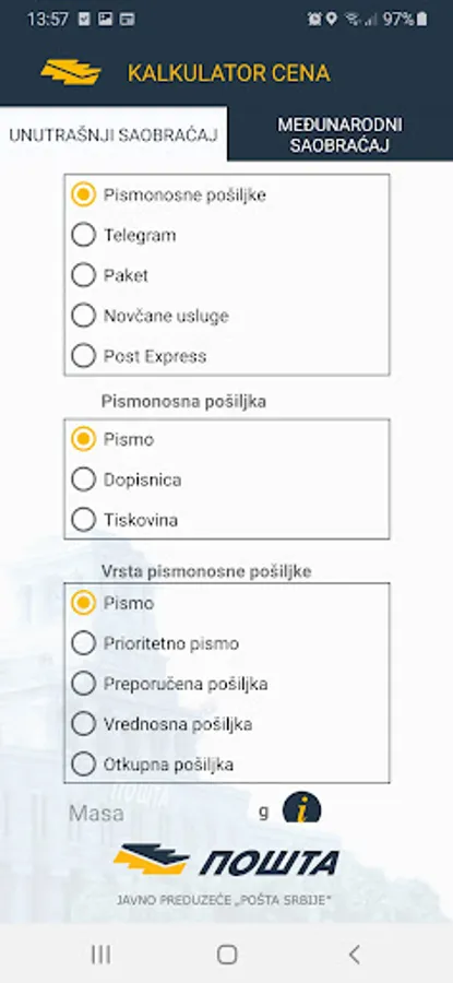 - PRICE CALCULATOR: calculate the price of the service for domestic and international traffic.