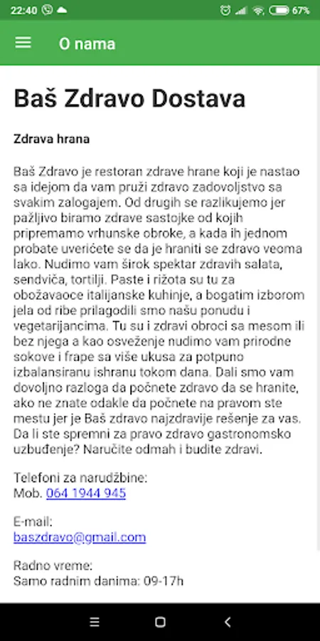 We just opened up for you. Because of the rapid way of life, because of the lack of time, because of the need for healthy food, because we care.