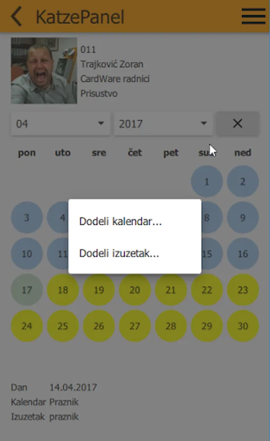 - Amendment calendar exceptions, employees change shifts