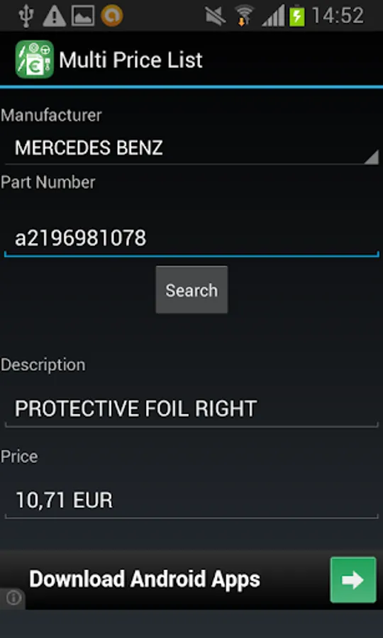 Multi Price List is an application created mainly for car part dealers, but also others in similar businesses or even car enthusiasts. It provides parts' description and prices which are dealers' without VAT in EUR (for the European market).