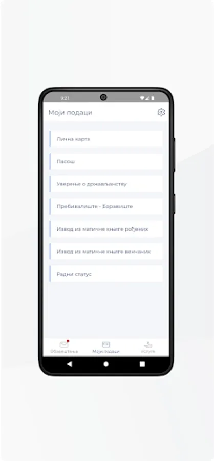 - My data section, where there is a list of personal documents: identity card, passport, mandatory social insurance, data from the birth register, data from the marriage register, citizenship, residence.