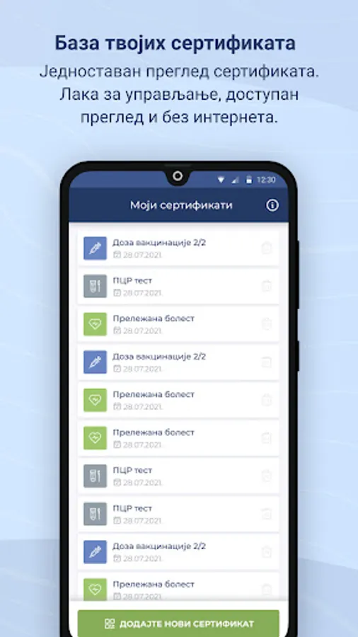 The application My EU CBS is the official application of the Republic of Serbia for safe storage of certificates on the results of testing, vaccination and recovery from the infectious disease COVID-19, which is EU compatible.