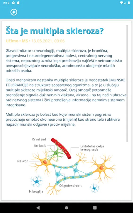 The application "My MS world" was prepared by the Multiple Sclerosis Society of Serbia and is intended for all patients with multiple sclerosis.