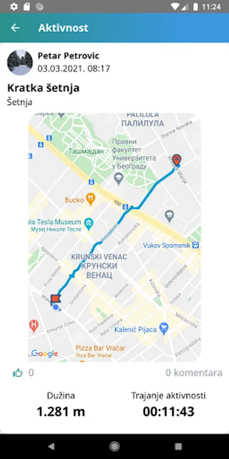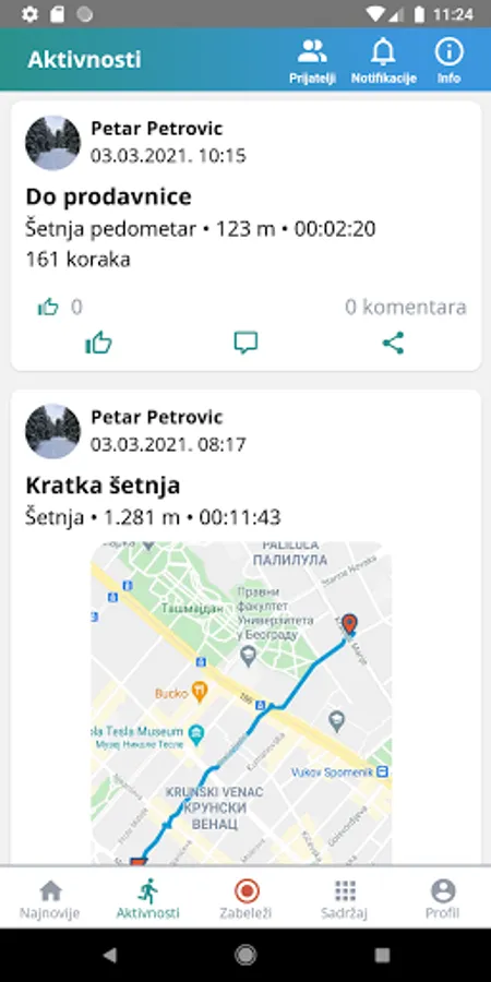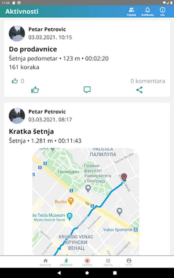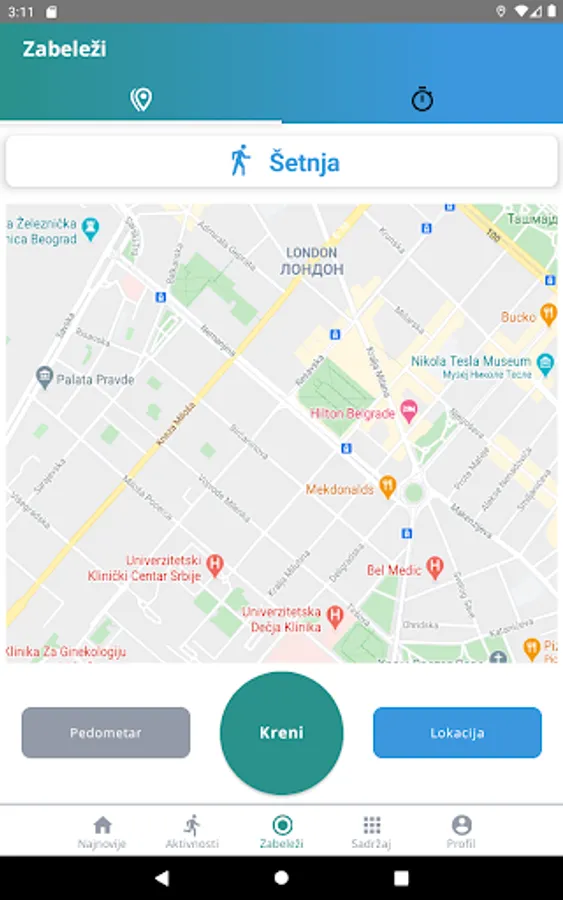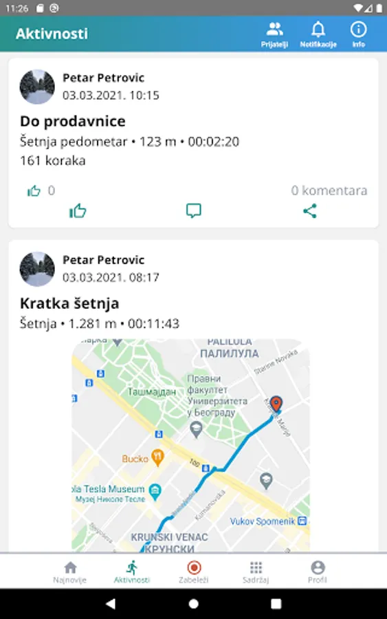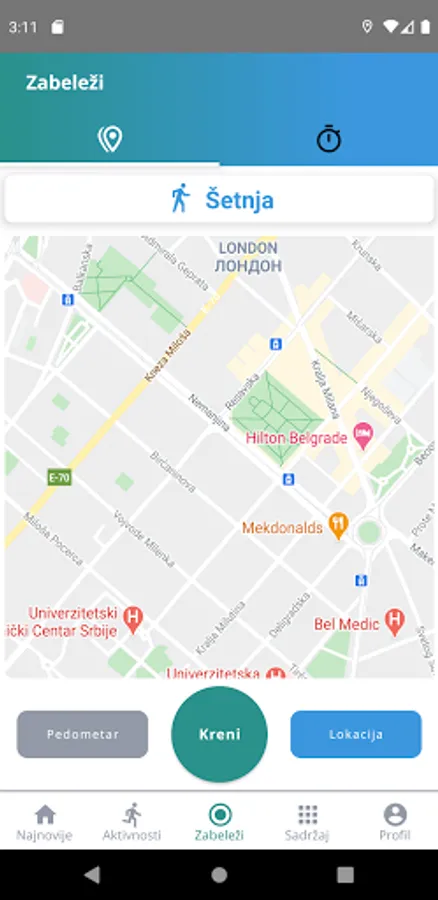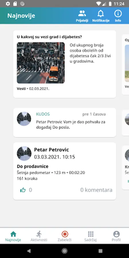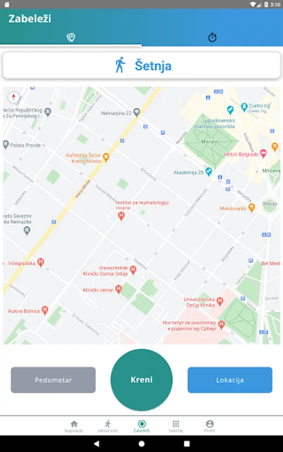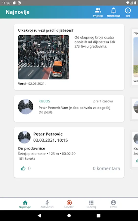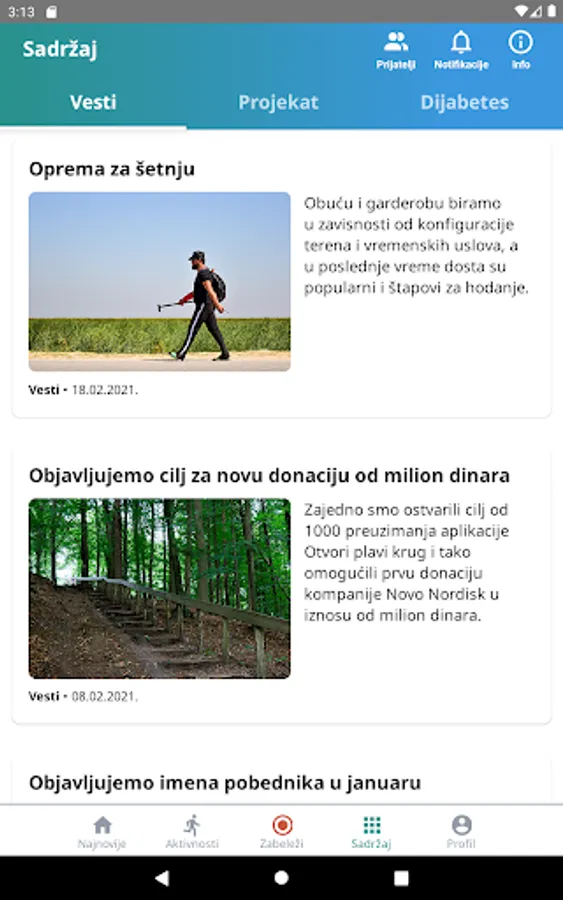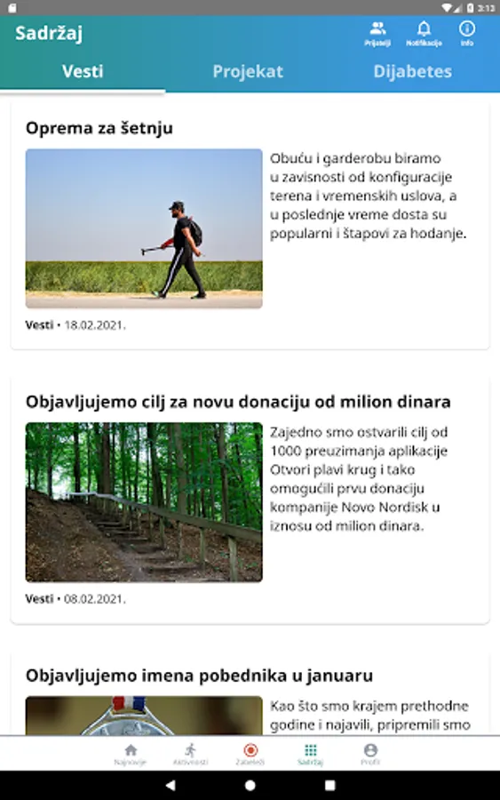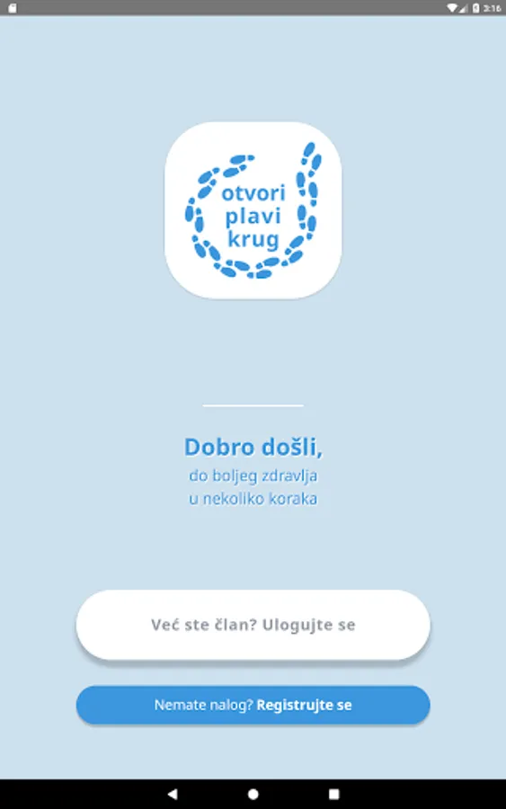 The application is part of the project "Open the Blue Circle" and its purpose is to improve physical activity and a healthy lifestyle, as well as informing about the activities within the project.