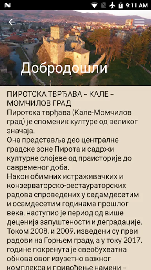The fortress of Pirot, also known as Kale or Momcilo's castle, is a cultural monument of great significance. It is part of the Pirot’s city center and contains cultural layers from prehistoric to modern times.