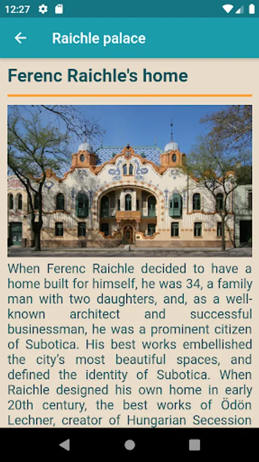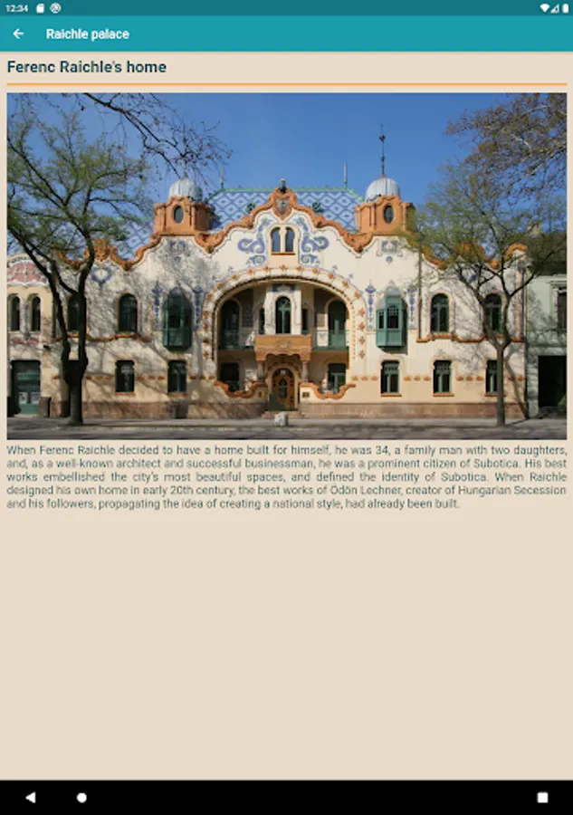 Raiche Place was built in 1904 by the architect Ferenc Raichle to be his home and his design studio. Expensive materials, the unusual combination of colours, the vibrancy of forms, the lavish interior and the backyard make this house a wonderful instance of the Art Nouveau architecture. At present, it hosts a modern art gallery.