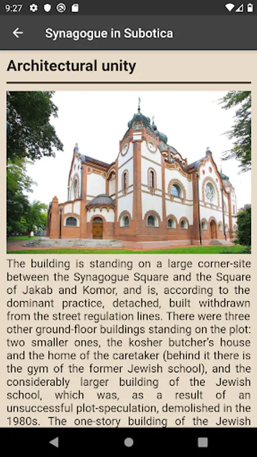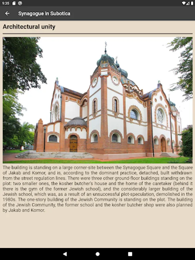 The Synagogue in Subotica was designed by Marcell Komor and Dezső Jakab, partner architects from Budapest, and built between 1900 and 1903 in a new "Lechnerian orienal / Hungarian style". It is a unique example in the region, and the second biggest Synagogue in Europe, after the Synagogue in Budapest.