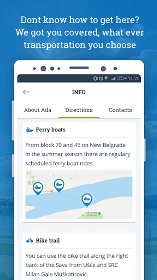 Ada Ciganlija is today the largest sports and recreational cultural and entertainment center in Belgrade, which offers over 50 sports fields (football, tennis, basketball, handball, baseball, rugby, golf, beach volleyball, cricket), water spots boating, kayaking, dragonboats, sailing boats, swimming, diving), adrenaline activities (bungee jumps, adventure park, pijnstol, aqua ski, ski tackle), wellness programs (holistic center, fitness and spa), entertainment programs and facilities for the youngest visitors (city on the water, pedal boats, rubber kayaks, SUP, skimboarding, science park, driving, children playgrounds, picnic area), recreational activities (trim park, trim trail, biking, roller skating, mini golf, yoga, Pilates, skating in the winter period).