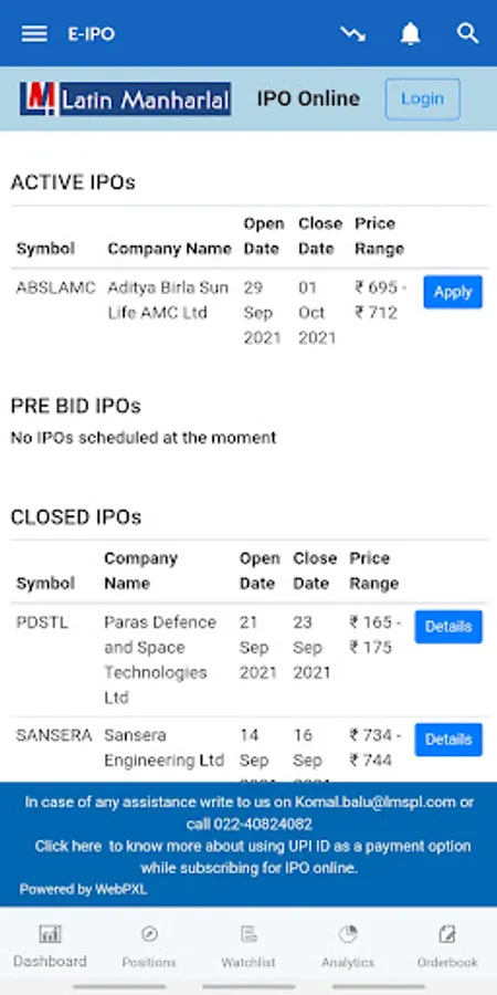 - Hassle-free and paperless application to IPO and also Pre-Bid for the upcoming IPOs.