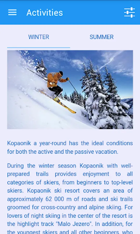 A modern complex of five buildings of 96 apartments and studios, built in the period between 2008 and 2013. The complex features a traditional mountain style architecture and is adapted for tourist purposes. It is an ideal place for active and passive recreation in the family and businesses as well as for beginners and athletes. Contemporary forms of furniture are tailored to the basic needs in terms of quality and comfort for guests. Within the complex, the hotel offers apartments and studios of various sizes and shapes ranked third and fourth category of accommodation.