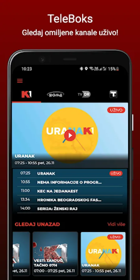 Watch your favorite channels live - Tanjug TV, K1, TV DR and Kazbuka!