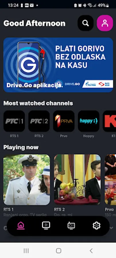 Watch for free with commercials or subscribe in prepaid mode for more content, ad free experience and advanced features such as catch-up up to 7 days and cast-to option.