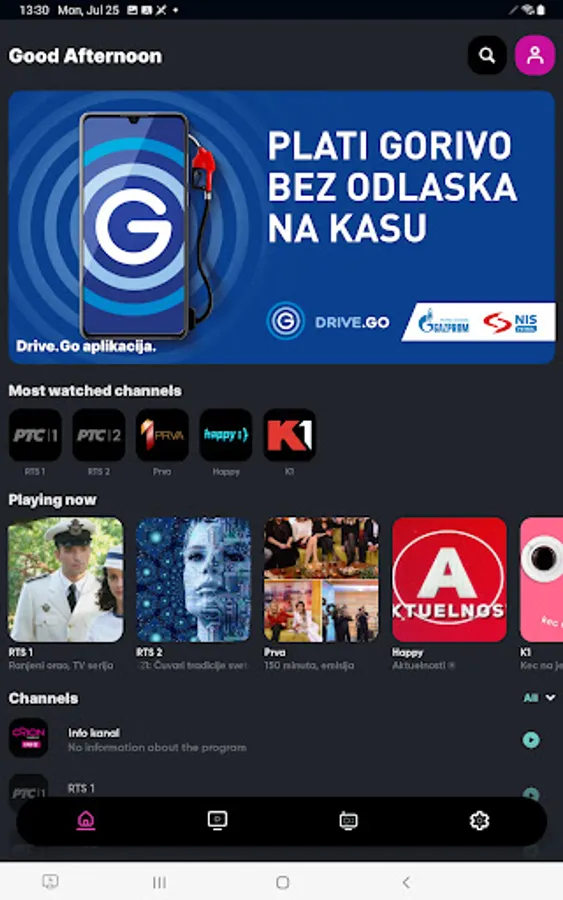 Orion telekom IPTV customers can use app as a part of multiscreen service with assigned Orion telekom username and password