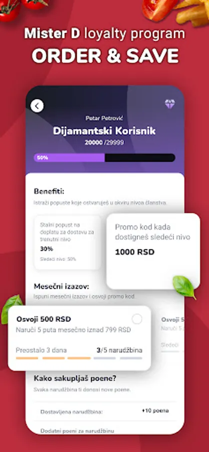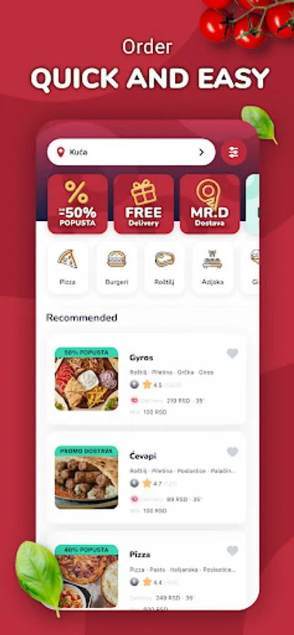 Mister D is your favourite choice for online delivery with more than 1200 shops in Belgrade, Novi Sad, Niš, Kragujevac, Subotica, Leskovac, Kruševac, Čačak and Pančevo which allows you to quickly and easily find restaurants that deliver food to your address. But that's not all! With Mister D you can also order delivery from the supermarkets up to your door.