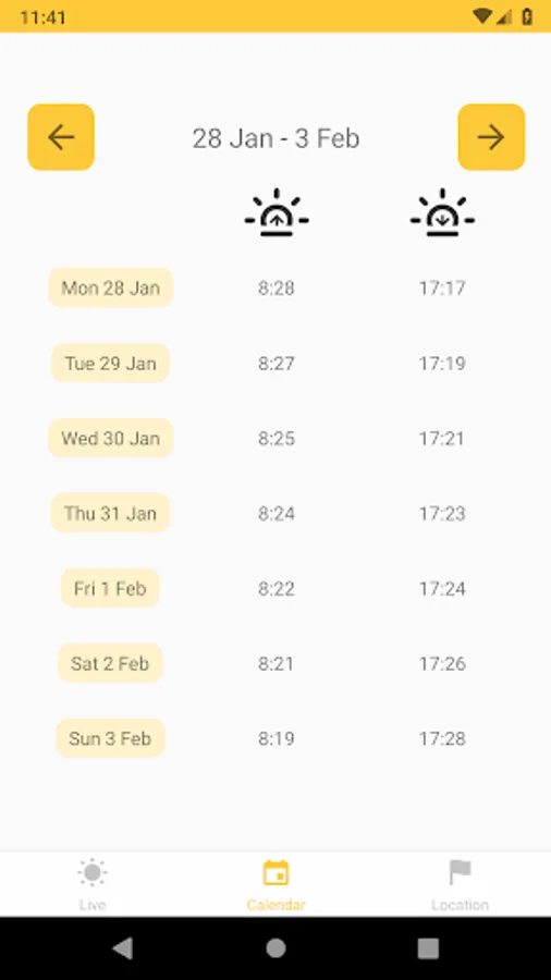 A simple and beautiful app to see the time of first light, sunrise, sunset and last light all around the world. Adjust the location yourself or use your phone's location.